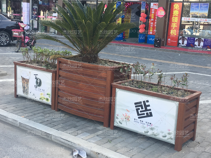 以街道上的花箱为例,比如高低组合花箱,尺寸是中间100(长)*60(宽)*80(高), 两边80(长)*48(宽)*60(高)(单位cm)。