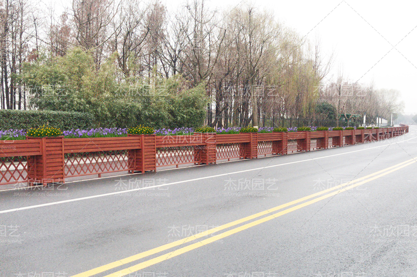 马槽花箱比长条花箱更加富有律动和变化,增添了整体的美感