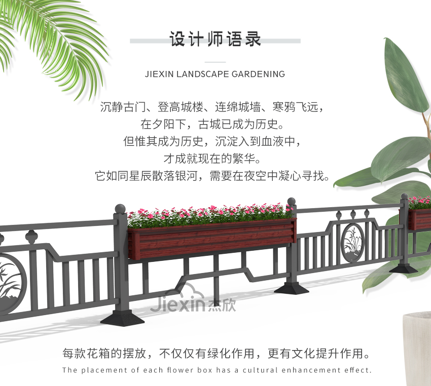 这款花箱护栏在设计元素中添加了地方特色,古老的宝塔凸显出城市的文化底蕴。