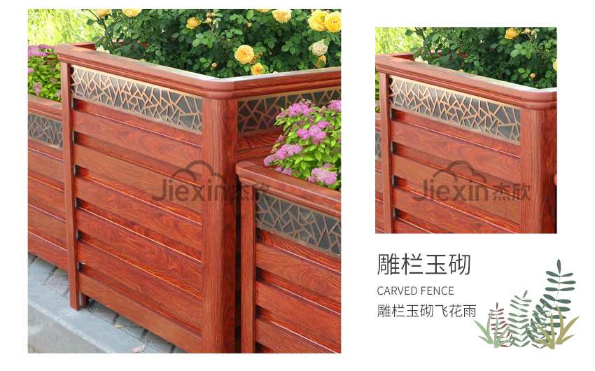 铝合金花箱的美感,在于木纹。木纹看似简单,却也有无穷变化。