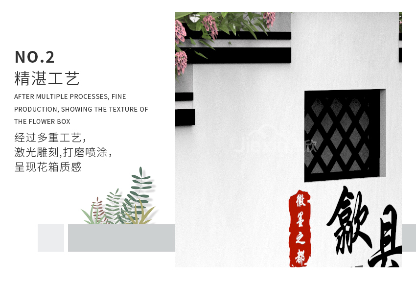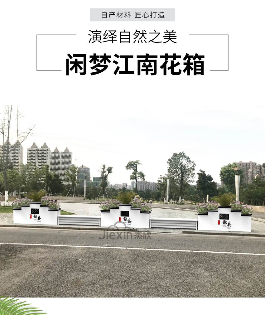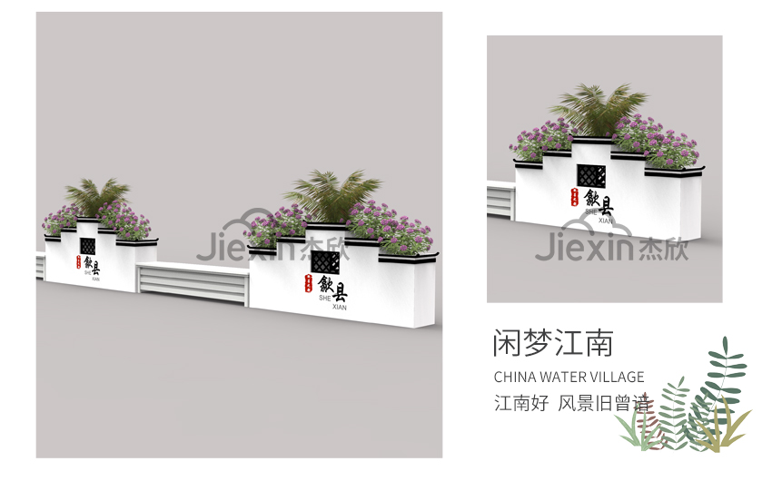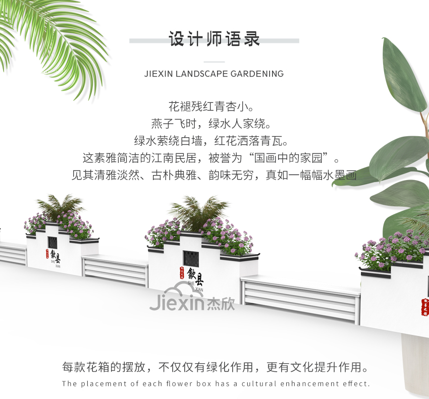 以江南文化为元素,设计出具有独特景观效果的花箱,衬托出城市的深厚底蕴。