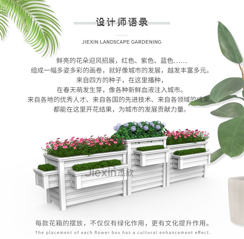 白色组合花箱具有鲜明的景观提亮效果。