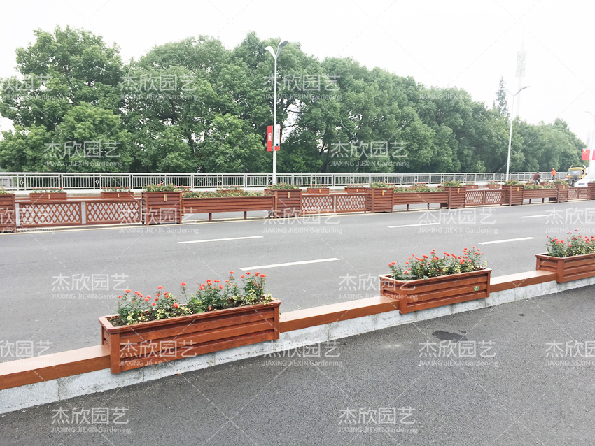 第二种,安装式花箱。安装式花箱是卡位在桥梁上,一般是机非隔离带上。安装式花箱的宽度要根据隔离带来设置。