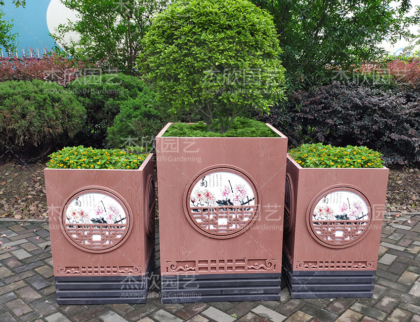 这款花箱有着浓郁的江南风情,同时极大发挥了水墨画的氤氲之美和天人合一理念,更能呼应现代城市追求的园林意境。