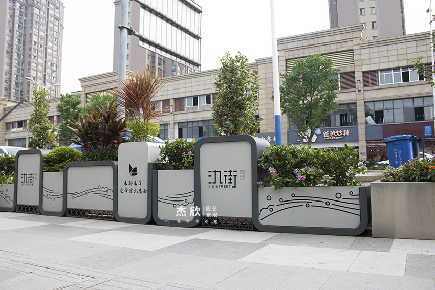 最初PVC花箱代替防腐木花箱,铝合金花箱护栏替代马路护栏,如今商业街装点上文化景观花箱,城市中心道路花箱扮靓城市风光!