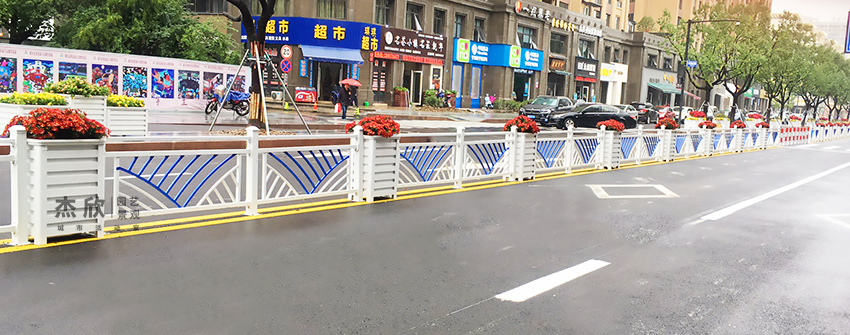 栏杆花箱是道路景观的主要产品。栏杆就是我们熟悉的锌钢护栏,锌钢护栏主要用在城市中央、机非隔离带。