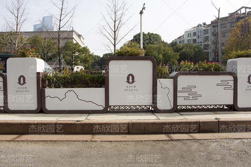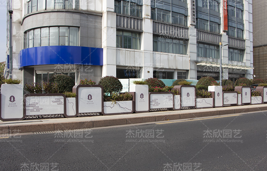 道路隔离带花箱的设计也可以根据客户需求定制,这是一款以山水文人景观为主题的花箱,表现出优美的城市生态风光。