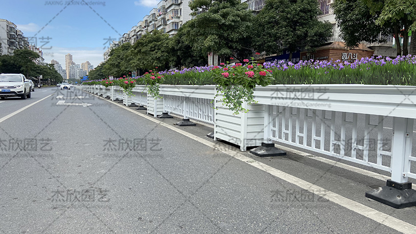 铝合金花箱护栏的尺寸可以定制,不同场景中使用的花箱长宽高不同。摆放在中央隔离带的花箱护栏,也有常规的尺寸选择。