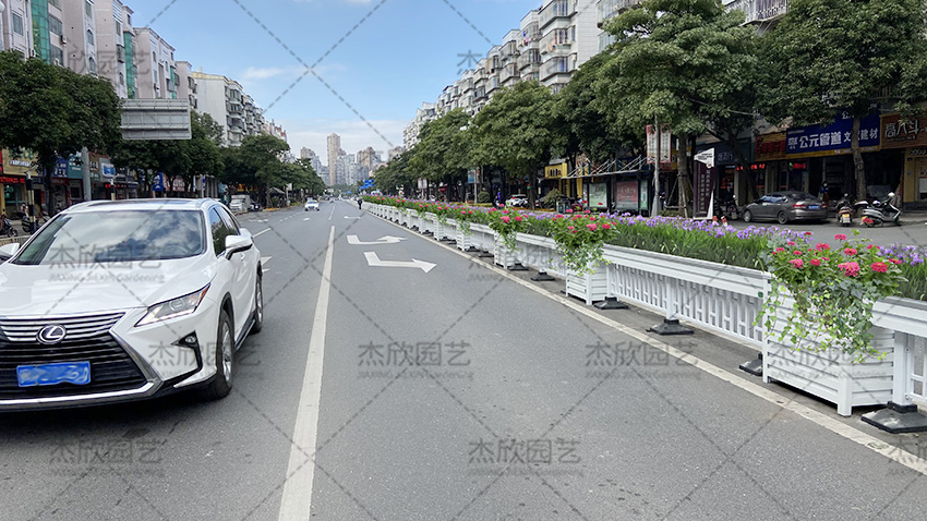 道路隔离花箱不仅可以使用在中央隔离带,也可以使用在机非隔离带。