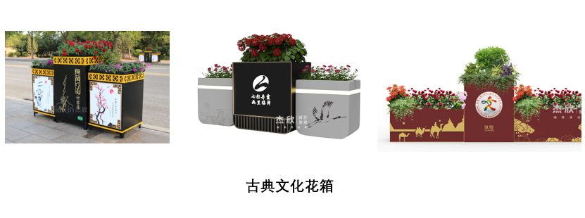 隔离花箱中具有古典气质的花箱,有哪些?古典文化花箱在城市中适应性很广,而文字部分则可以根据需求定制。