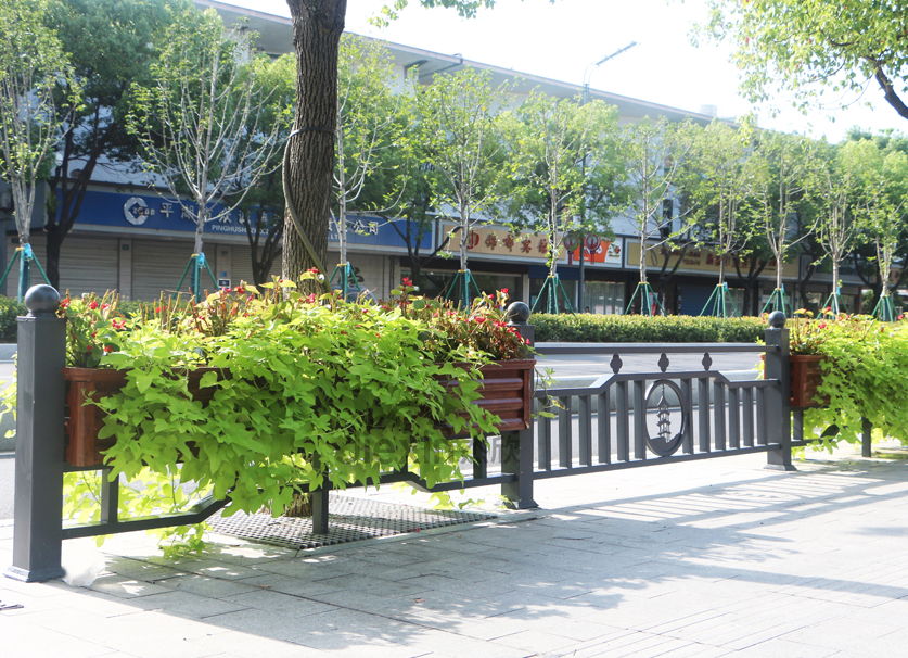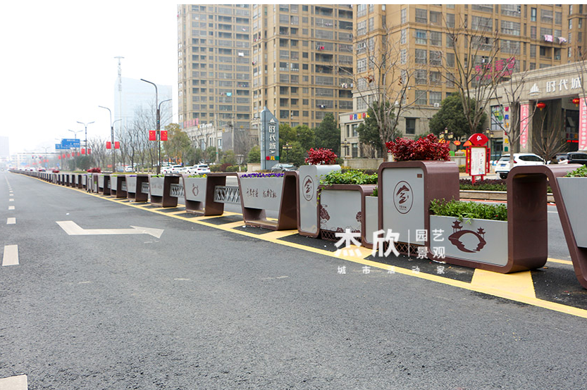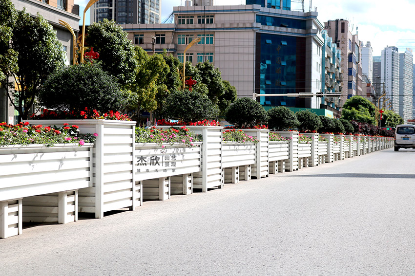 景观花箱的含义可以定义为融于城市风景的花箱。花箱如果能和道路风景融合,给道路风景带来美,那么就是景观花箱。