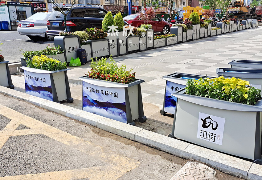 氿街街区景观以花箱和座椅构成,能够在场景中完成美化提升工作。山水元素作为此次方案的基地,用文化唤醒人们对宜兴历史的记忆。