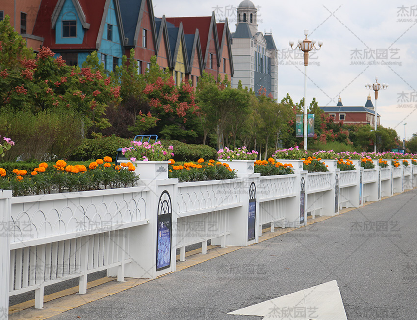 1. 道路花箱的形式:花箱护栏仍然占据大多数。为什么大家选花箱护栏?分析一下,原因可能有二:1.护栏部分代替花箱,节省了费用。2.花箱和护栏的组合,视觉上更加开阔、明亮。又省钱又美观的方案,大家都不会错过。