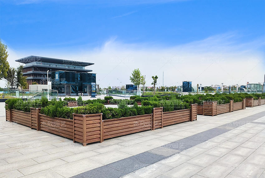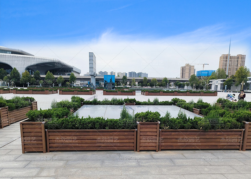 铝合金花箱不褪色、不破损,可在户外使用二十年,免后期维护,颜色多样,其中木纹铝合金花箱以逼真的肌理著名,成为城市灵动的风景线。