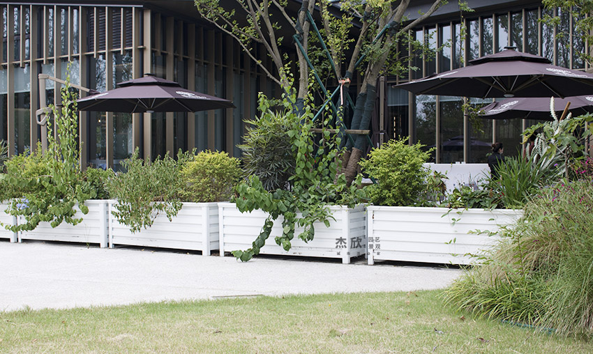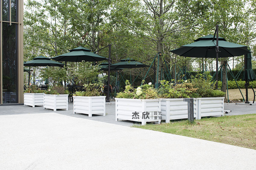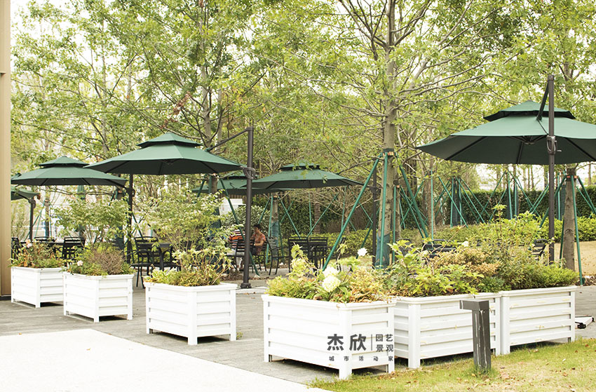 也为客户提供了较好的纳凉环境,也兼具了一定的私密性。花箱采用的是铝合金材质,可在户外使用二十年,免维护,是市政专用的花箱产品。