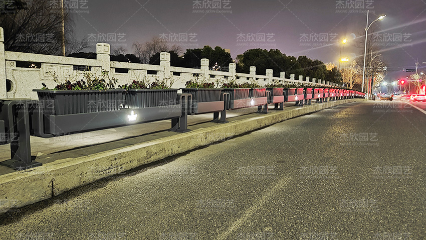 花箱方案选择的是现代风格,匹配城市风景。暖色灯光映照出温和的人间烟火。