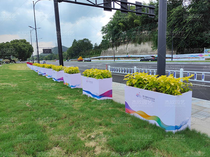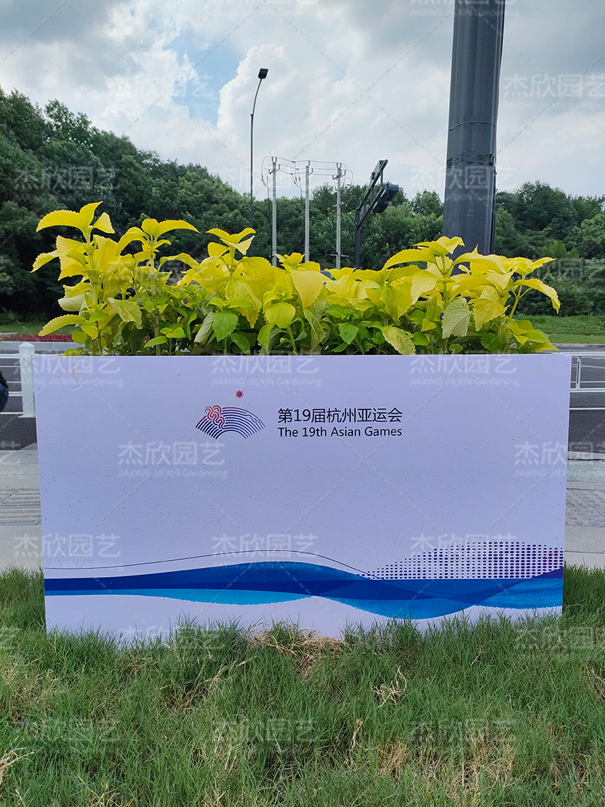 箱体由PVC构成,外观图案以UV打印,栽植绿卉,勃勃生机、清爽袭人。一路望去,亚运气息扑面而来。
