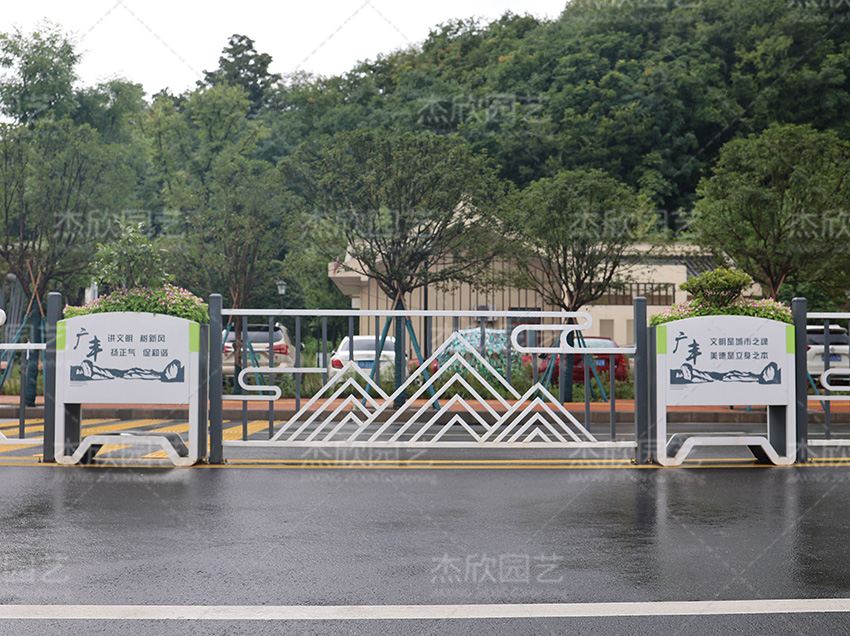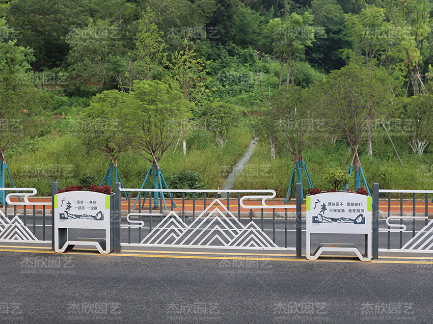 道路景观护栏以广丰的自然地理为构思,融入了铜钹山自然资源主题,一方面体现广丰自然的风貌,另一方面展现出广丰在城市发展上的特色方向,充分体现了城市的生态面貌。