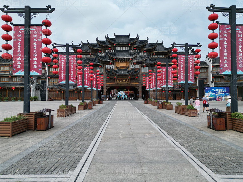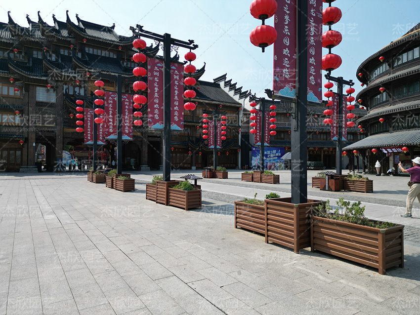 铝合金花箱不仅适用于街道、商场,还适用于古镇景点,尤其是黄檀木色花箱,与古镇的风景更为贴合。