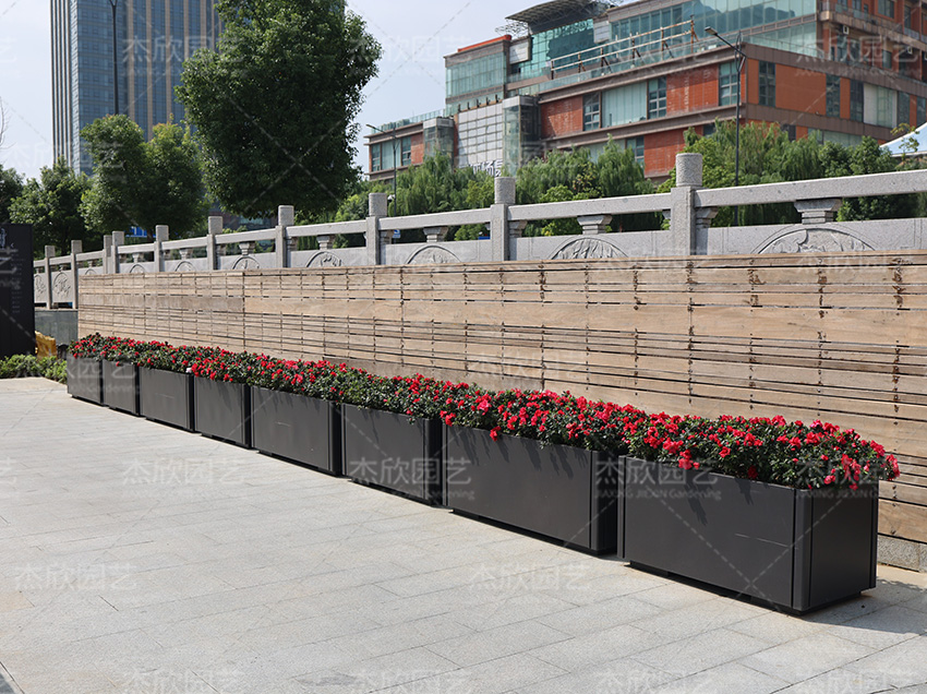 商业街花箱的摆放可以连放,也可以几个摆放那个,方案多样,空间选择灵活。