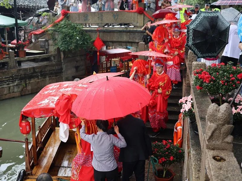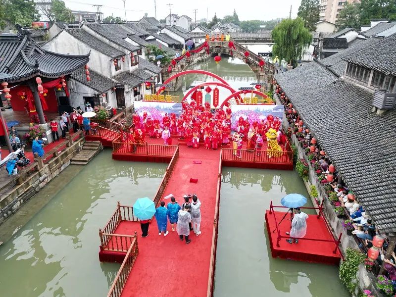 近日千年古镇枫泾举办了第十七届“吴根越角”枫泾水乡婚典。作为2023上海旅游节的重大主题活动之一,枫泾水乡婚典结合古镇特色和优势,打造120米水上婚典T台,以传承经典、迭代破圈的方式焕新亮相。