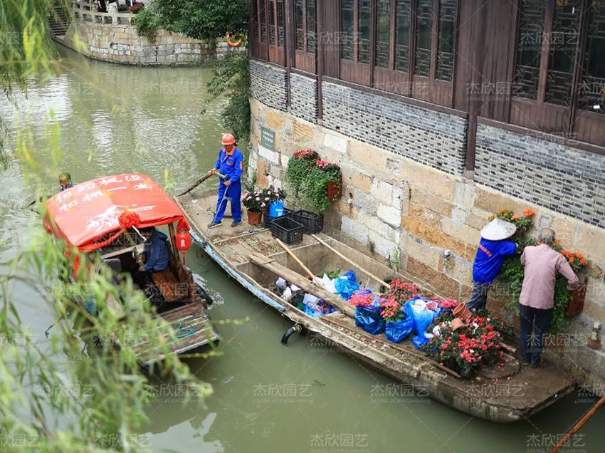 为筹备水乡婚典,古镇将河道两岸的重新焕新,古镇内部的草花重新栽种,呈现一个生机盎然、喜气洋洋的千年古镇。