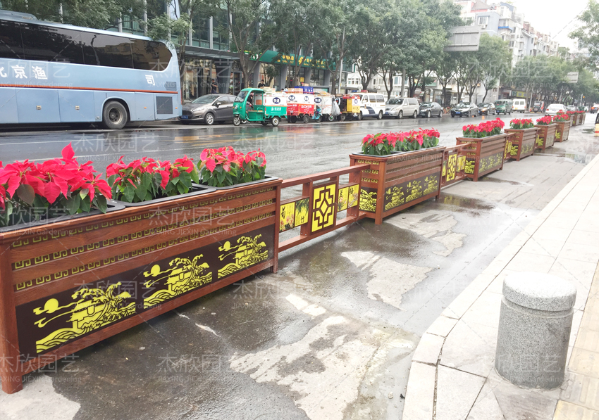 这款智慧花箱,外型设计由花箱、护栏组合,选配红木色,增添古典气息,发光图案取自“春江花月夜”,韵味盎然,打造古典美。
