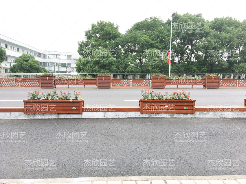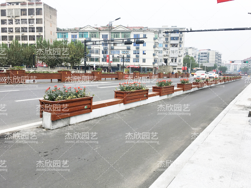红色木纹花箱,景观效果好