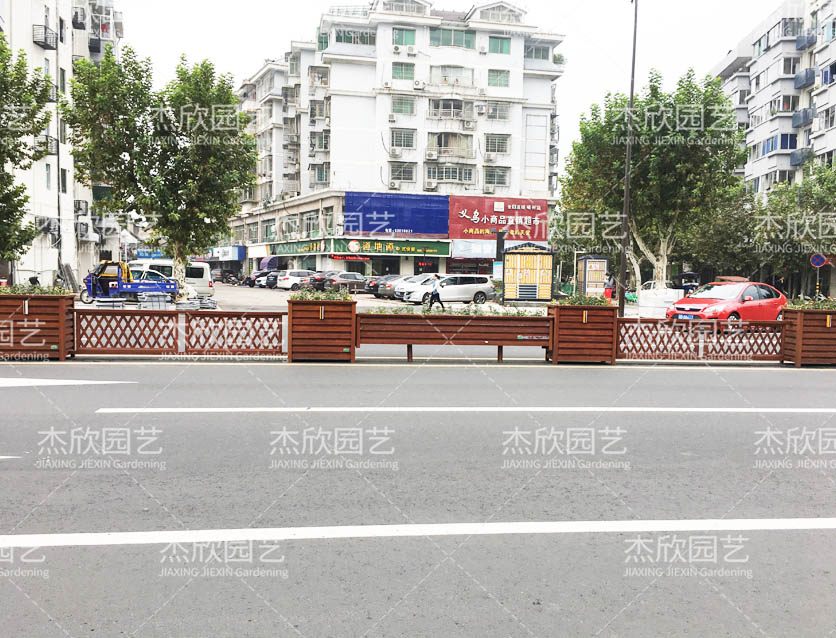 景观效果:红木色花箱,和环境相融合,自然清新,给道路增添魅力。