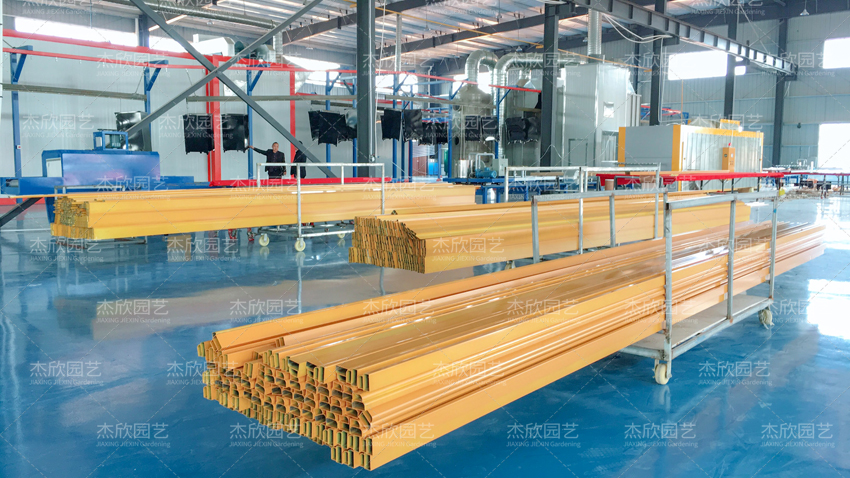 目前杰欣江西已全线引进国内领先铝材生产设备(挤压生产设备、喷涂生产设备、木纹转印生产设备),旨在降低铝合金花箱的生产成本,推动了环保铝合金花箱落地全国。