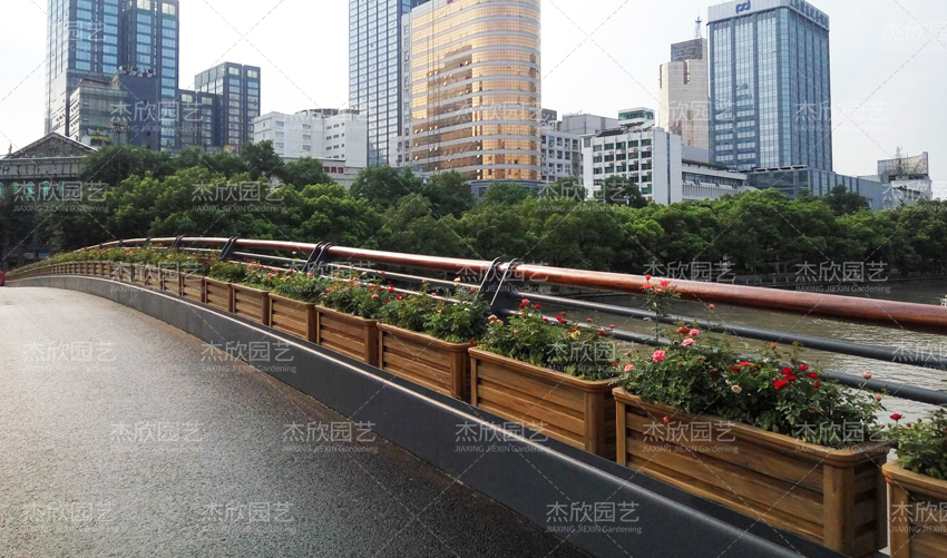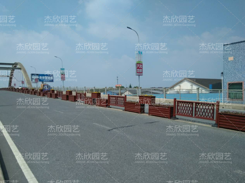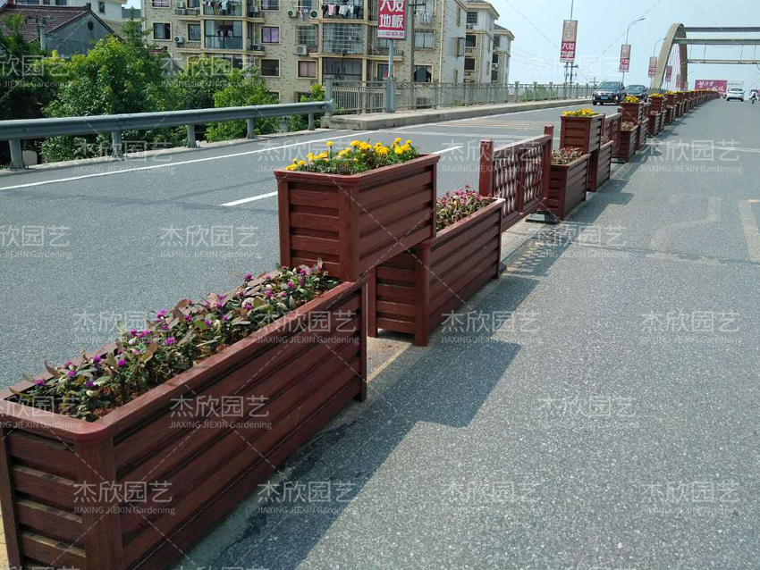 桥梁中央隔离花箱主要为了隔离车道,同样采用铝合金材质,高强度防撞,红木色花箱搭配绿植,景观效果好。
