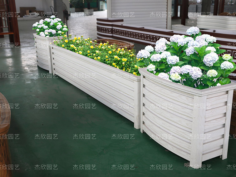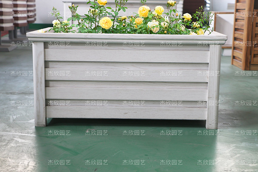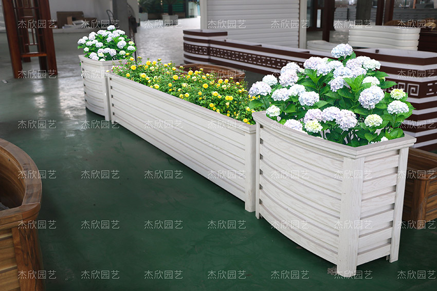 这款铝合金花箱比较特别,是白橡木色,非常的清新