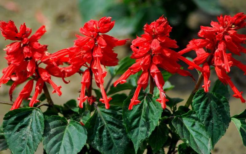 一串红,又称爆仗红、象牙红,为唇形科鼠尾草属形植物?;ㄐ蛐蕹ぃ煜恃?,花期又长,适应性强,为中国城市和园林中最普遍栽培的草本花卉。