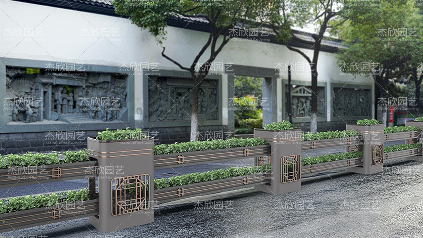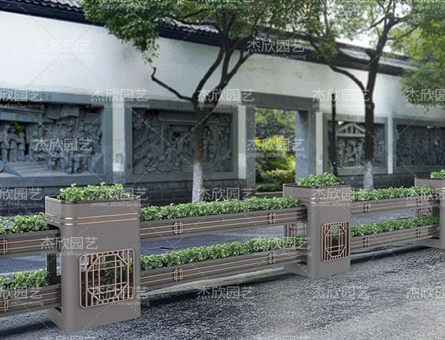 园林是中国建筑美的杰出代表,也是中国人对人居环境的诗意阐述。园林寄托着人们对美好生活的向往。园林艺术在当代设计中也屡见不鲜,并深受喜爱。这组道路花箱将园林之中的窗格艺术之美融入其中,取其神,去其形,用现代手法表现出祥瑞之意。