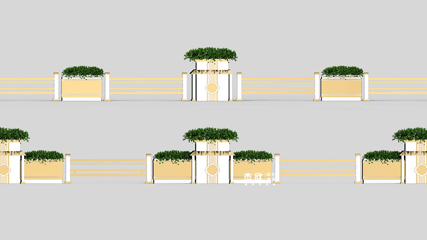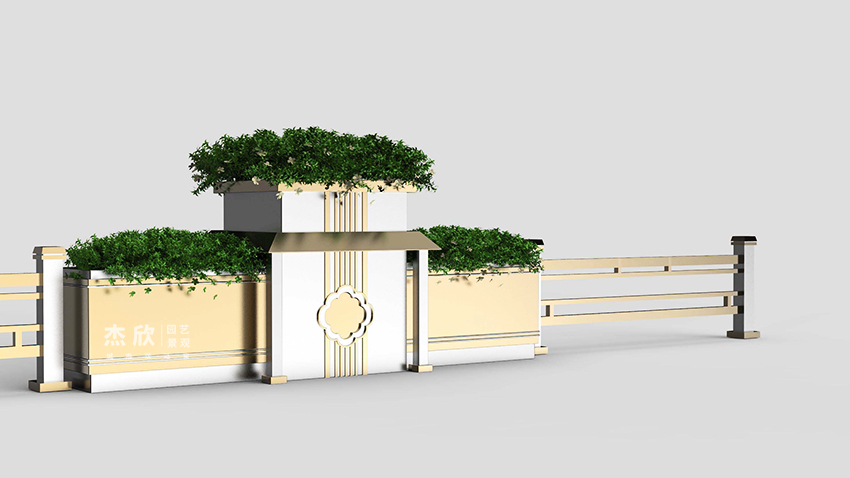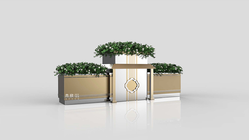 东方记忆花箱,将传统建筑融入到城市花箱。花箱作为载体,反映城市精神面貌。首都北京,历经沧桑,也包含岁月沉淀,令全国人民心驰神往?;ㄏ渲魈宀糠质侨”本┓秸慕ㄖ?,融入了现代的审美,在色彩上着以暗金、白金,呈现出低调、沉稳的气质。