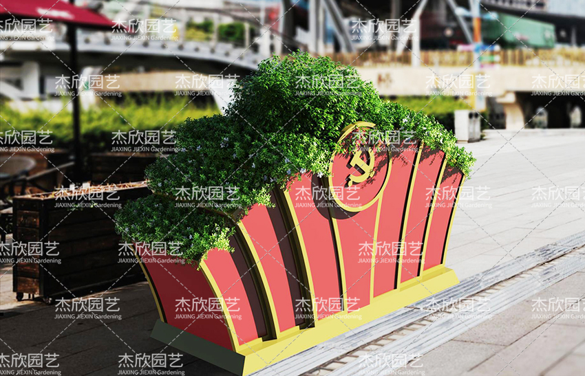 党旗花箱山形外观,一方面象征了前进道路的崎岖艰险,另一方也说明了会当凌绝顶,一览众山的道理。只有历经艰险,勇于抗争,不断进取。党旗70周年花箱,深入挖掘七十周年华诞的精神内涵,彰显了伟大祖国和人民创造美好未来的坚定决心,召唤出了人们内心的热忱。