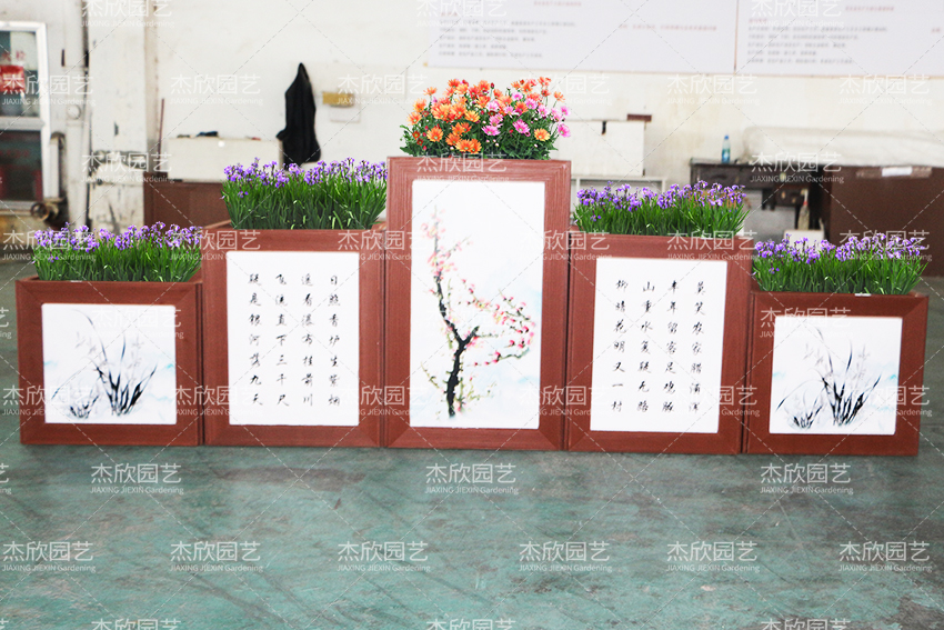 这款花箱的诗文可以定制,满足不同场景的使用。花箱上的图画,不管腊月梅花、春日桃花、盛夏荷花、九月秋菊都可以选择。花箱材料PVC材质,很耐用,箱体清洗便利,维护简单。
