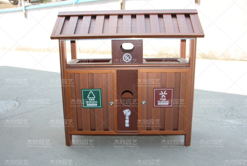 铝合金垃圾桶在外观上,不比防腐木垃圾桶效果差,款式也很多。