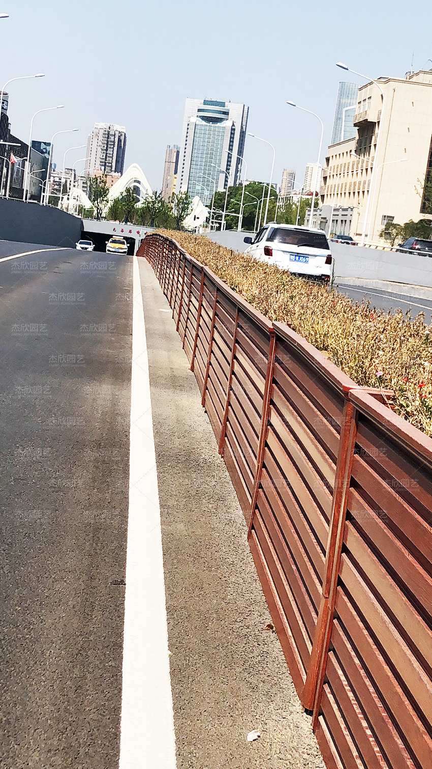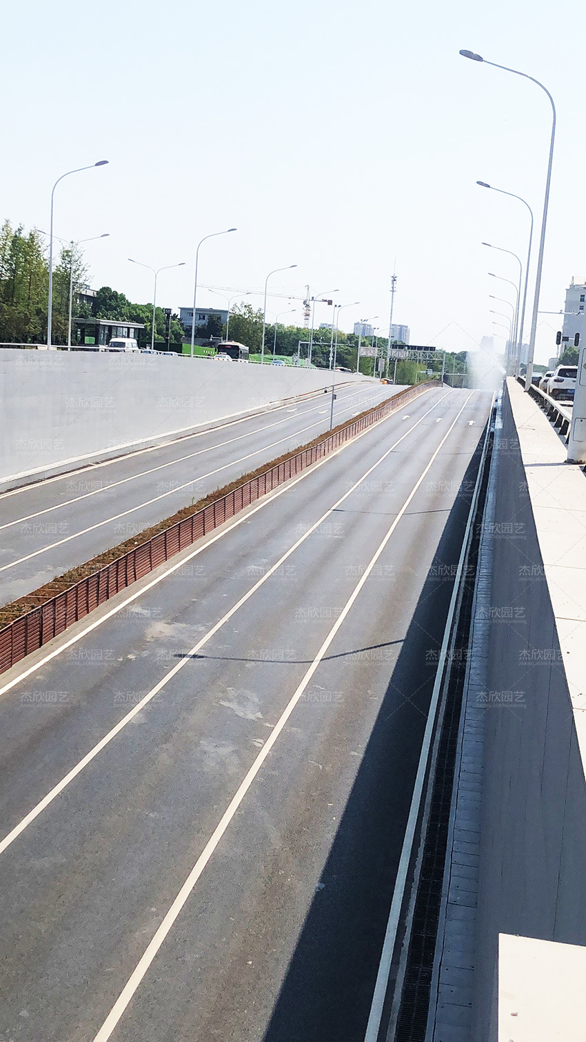 为美化道路交通,目前光谷隧道已摆放花箱,起到隔离绿化的作用。后期搭配草花,成为立体交通美丽的风景线。