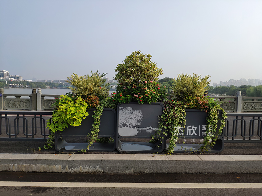 花箱部分通过定制图案,展现出城市风采和时代精神