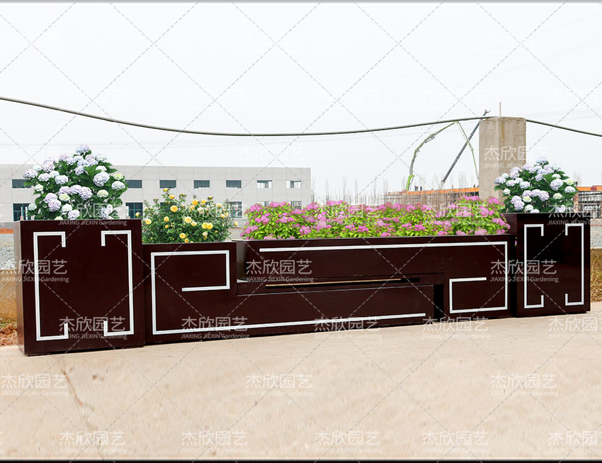 国风回纹花箱将回纹元素运用到道路花箱,传承国风文化?;匚谱怨乓岳?,深受喜爱。历经千年流转,逐渐成为人文符号。关于回纹的研究很多,学家认为:回纹是古人模仿自然中水的旋涡的产物。这个解释符合古人意象化审美观念。在民间,回纹更多被看作富贵不断头的一种纹样。如今回纹样式依然活跃在当代设计中,但更多借回纹表现国风文化。