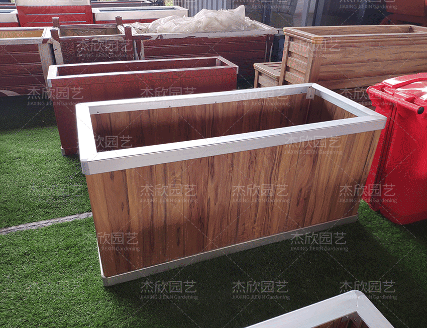 这款木纹色的花箱,外观贴近自然生态,展现出独特的景观魅力